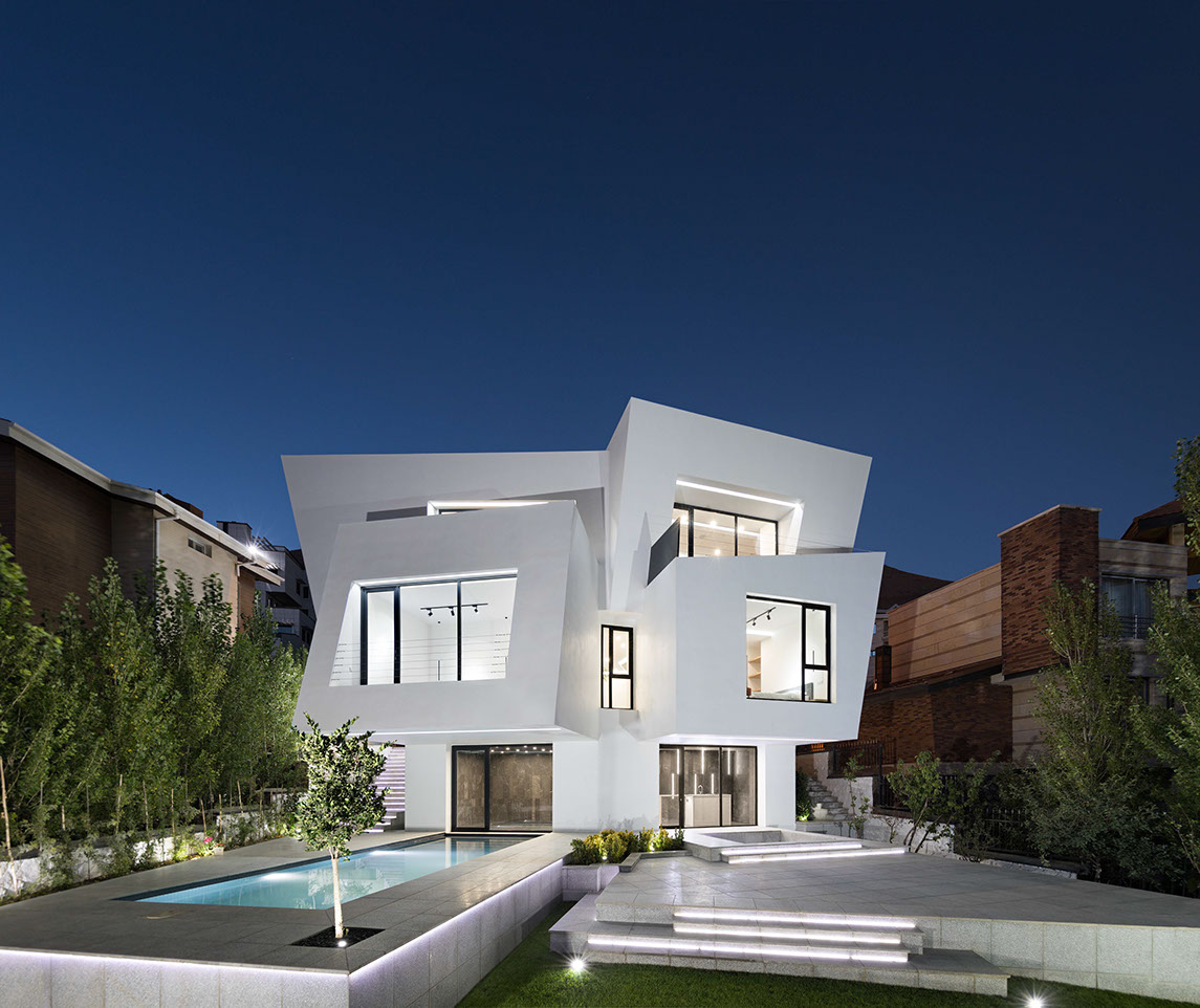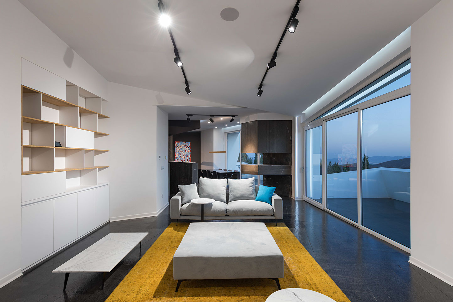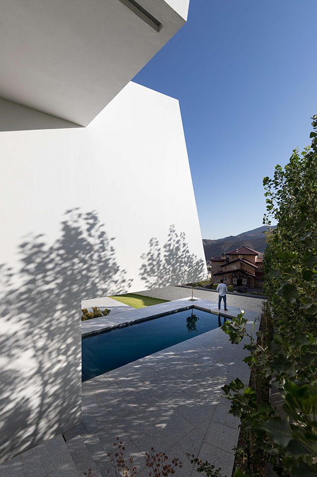 The best decision is to make a villa in harmony with the surrounding mountains by giving it a shape that resembles them and by extending some area of the floors by 1 meter alternating them, in this way pitches were formed, this facilitated both the drainage from rainwater both remembers and is very much in harmony with the environment in which it is found. Furthermore, it was decided to give a completely white color to the building to camouflage it with the snow in winter and make it significant with importance in summer. Finally, large glass surfaces were used to admire the beautiful view of the mountains
