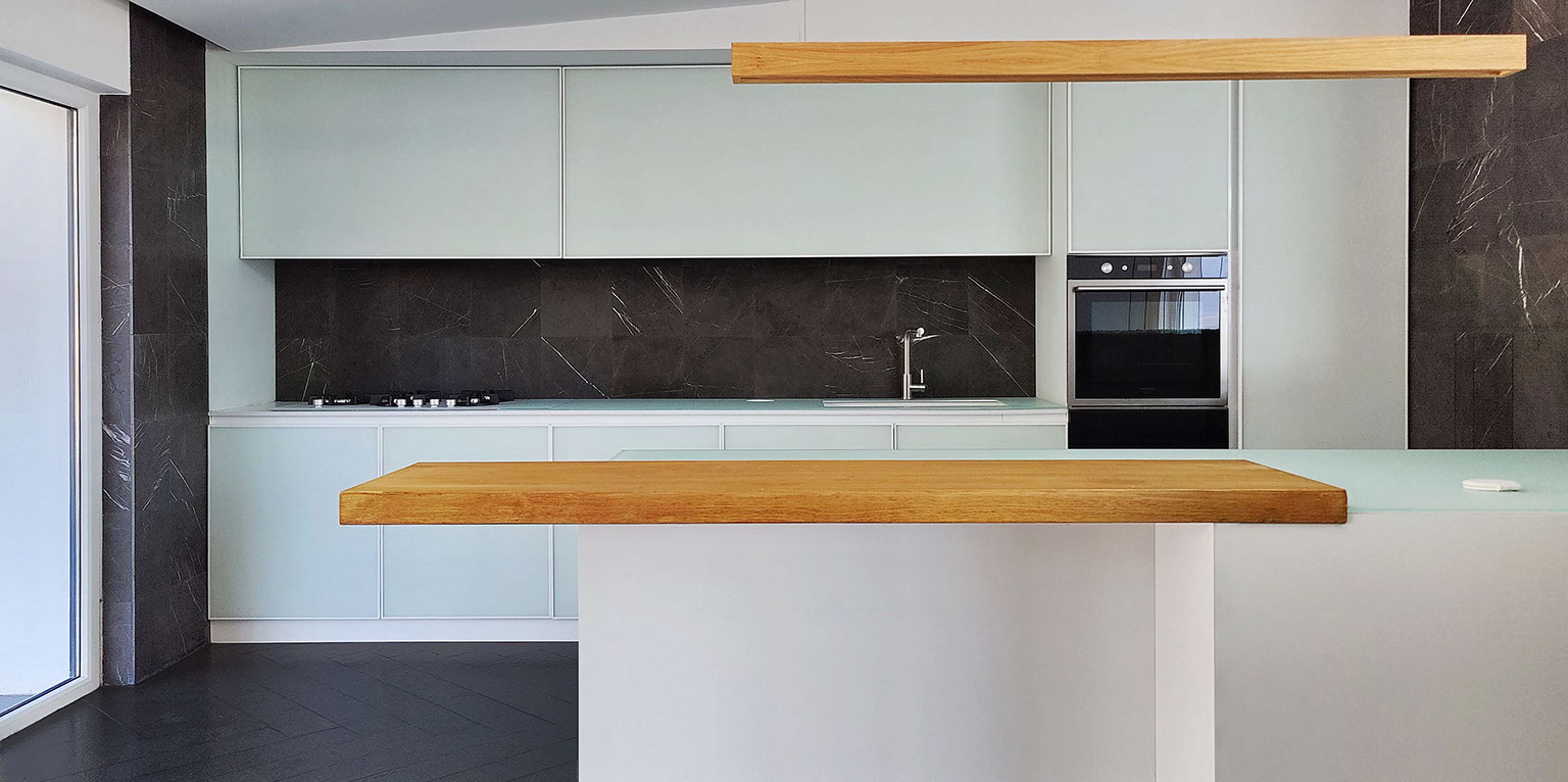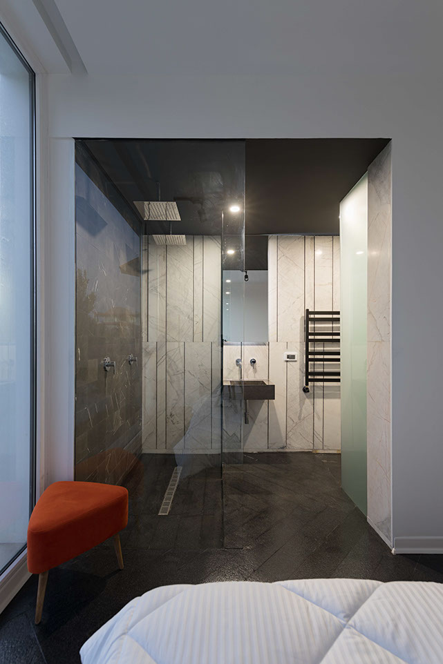 The last level (first floor) is used for the living area, also divided in 2 volumes, one for the living room and one for kitchen and dining area. These volumes are placed perpendicular to the lower floors for have an additional functions of the ground floor extensions: two large terraces. The living area is located on the top floor for the spectacular view we have on the surrounding landscape.