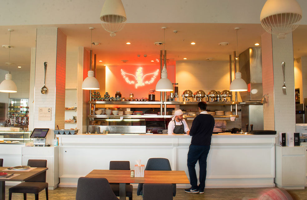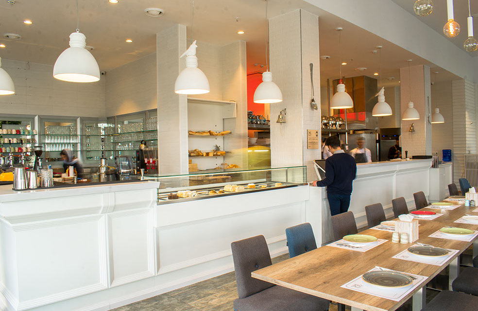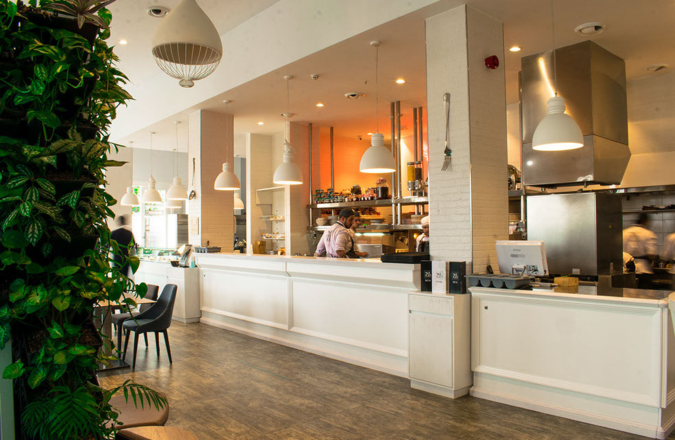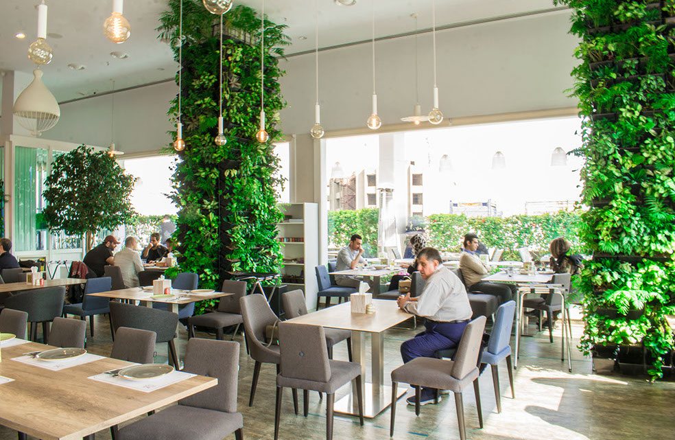 to make privacy of the customers to do not bother while they are eating and also provide a waiting area on the other side which you can easily watch the exhibition of jams and organic sauces produced by ILIO GROUP for sale in the place on the other part of "selfie green wall" photos are showing the restaurant experiences and give social touch that can no longer be dispensed with, especially when the restaurant on their events.