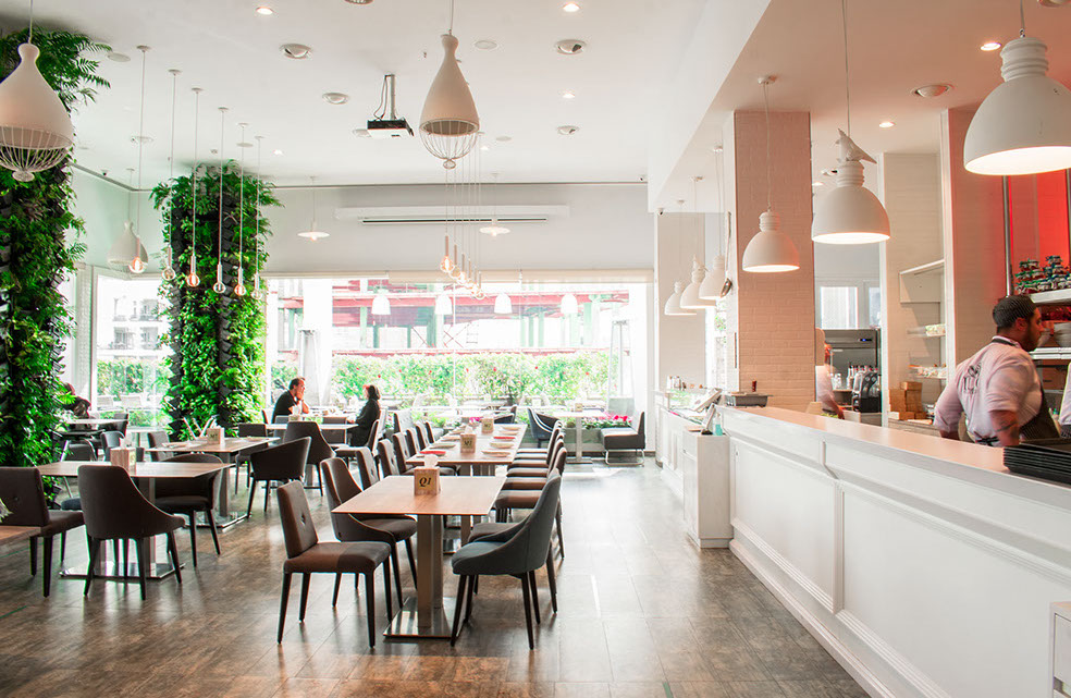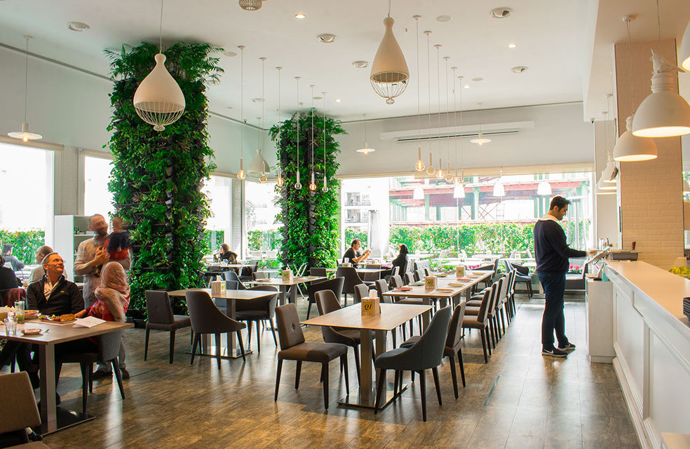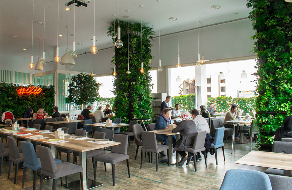 Ilio Restaurant which is located in Fereshteh Zone in Mellal Mall .(definetly one of the best Shopping Mall of Tehran.)The restaurant established since 2016 and the clients decided to change the interior design and create a sort of special cozy atmosphere in which the customer feels at ease and can be exploited from breakfast ,brunch even after dinner. uc21 architects group for this project decided to answer the customer needs with the concept of italian modern restaurant that mix integration of nature and vegetation .to creat the naturalness and freshness area the products used to purify and put a microclimate inside the restaurant so that customers feel embraced by nature. As the owners come from a family of nurseries the job become much more easier .